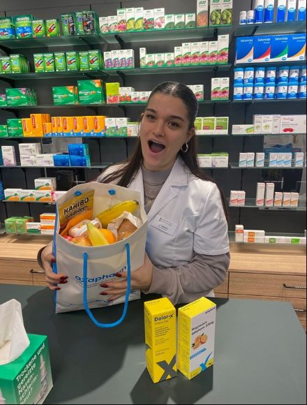 Znüni-Korb dem Apotheken-Team überbracht hat.